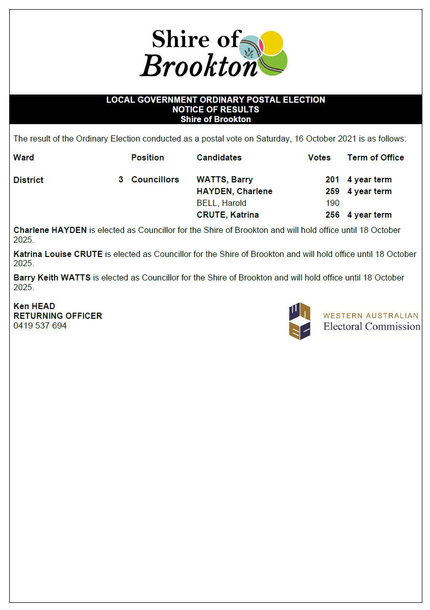 Full details about eligibility and nomination procedures for prospective candidates can be obtained by contacting Gail Macnab, the Shire's Returning Officer can be contacted on 0461 386 657.