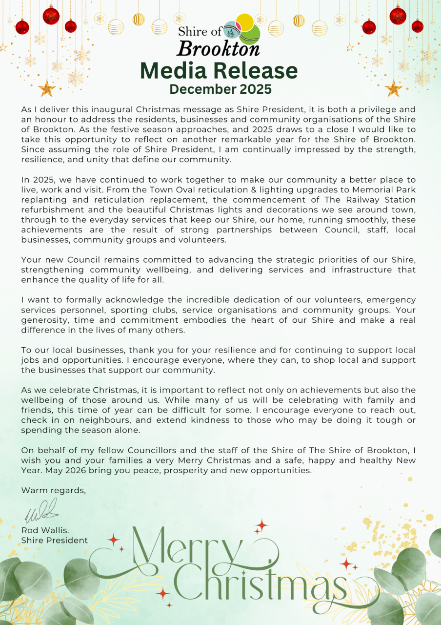 2025 Shire President's Christmas Message