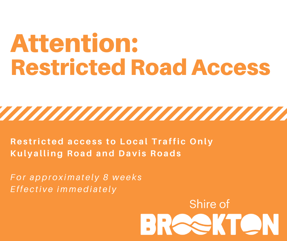 Restricted Road Access: Kulyalling and Davis Roads, Brookton